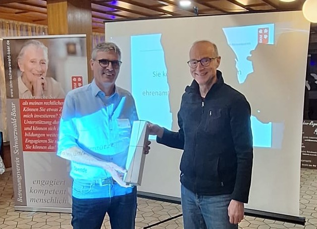 Organisator Harald Blank vom Leitungsteam der Kolpingsfamilie Donaueschingen bedankte sich bei Niko Reith und seinen Mitarbeitenden mit einem Präsent für die aufschlussreichen Informationen rund um
